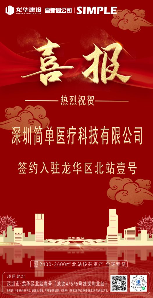 We are thrilled to announce that Simple Medical has officially signed an agreement to move into North Station One in Longhua District! This marks a significant step forward in our strategic planning and represents a new milestone on our path of growth.